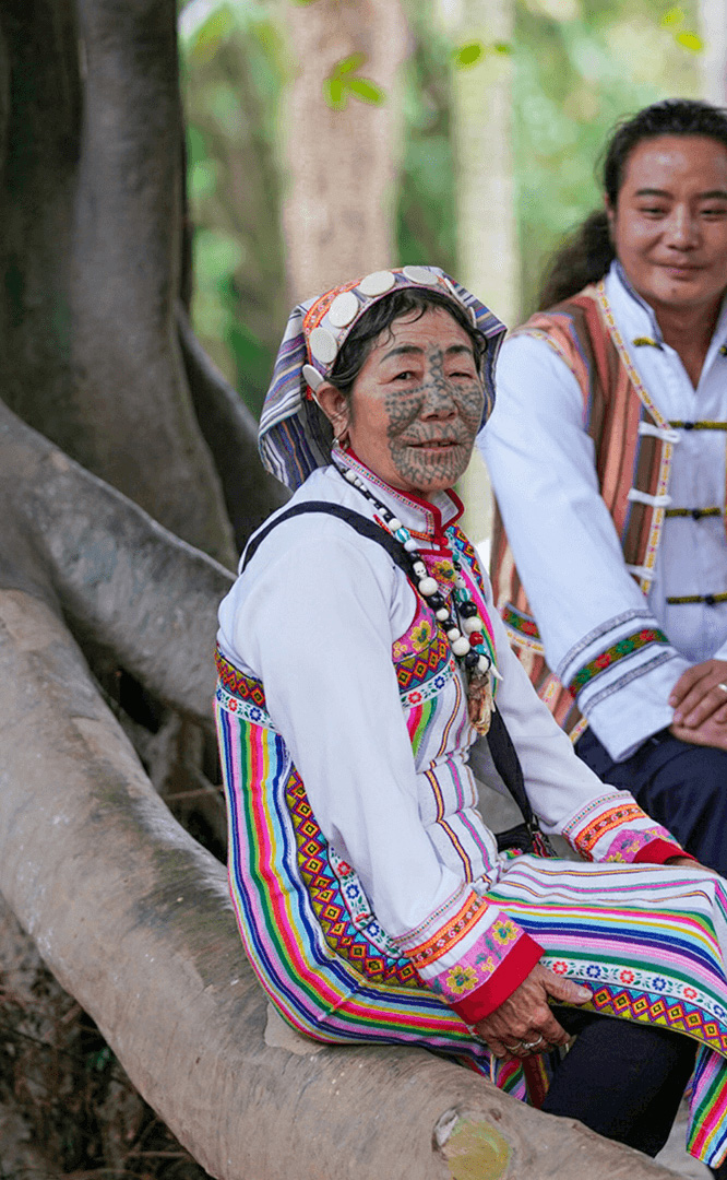 彝族在云南境內(nèi)約471萬人,是省內(nèi)人口最多、分布最廣的少數(shù)民族,主要聚居在金沙江、元江流域和哀牢山、無量山腹地。彝族是一個能歌善舞的民族,民間打歌、跳樂之風(fēng)盛行,大三弦、跌腳舞久負盛名。火把節(jié)是彝族最具特色的民族節(jié)日。彝族村占地50余畝,三虎浮雕墻與虎頭內(nèi)祖師形象表現(xiàn)了彝族虎鷹文化。太陽歷廣場圖騰柱上有太陽、虎、火和八卦圖形象,周圍環(huán)繞著10個朝向不同的月球造型,外圓周有12生肖石雕。依山而建的“...